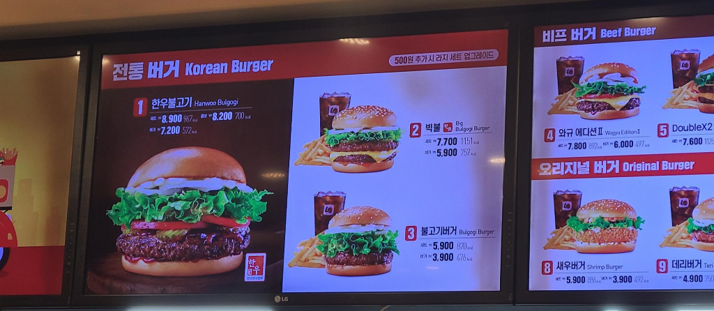 롯데리아에서 추천하는 메뉴라면 여러 메뉴들 중 단연 한우불고기 버거가 아닐까 싶습니다.(개인적인 입맛이니 참고만 해주세요.) 그냥 불고기 버거에 비해 내용물이 풍성하며 버거 사이즈도 수제버거 처럼 큰 편이라 저렴한 수제버거를 먹는 느낌이 나기 때문인데요. 그 외에 스테디셀러인 새우버거와 핫크리스피 버거도 추천합니다.