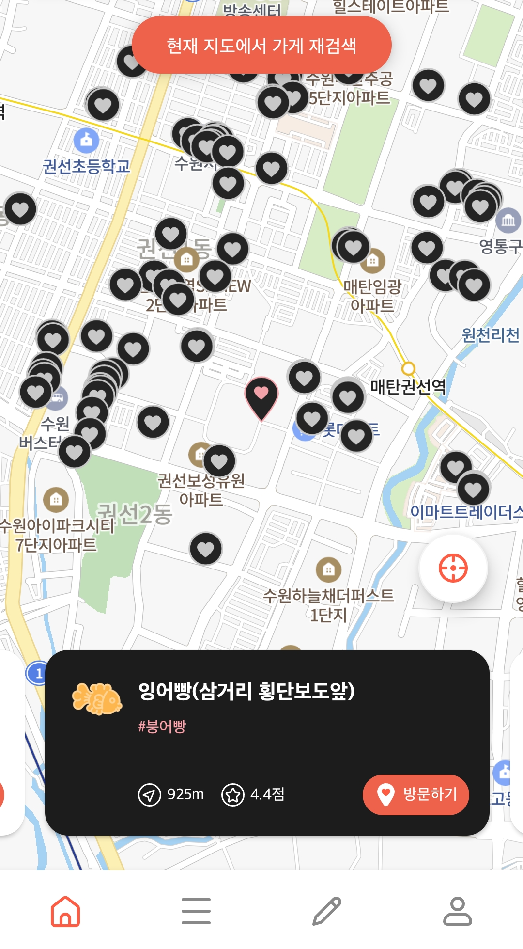 겨울철에는 가슴속에 3천 원을 지니고 다녀야 한다는 유머에서 시작된 어플인 것 같습니다. GPS로 내 주변을 검색할 수 있고 주소로도 검색이 가능합니다. 붕어빵, 호떡, 문어빵 등등 간식 종류가 많아 원하는 간식으로 조회가 가능합니다. 실제 사용자들이 위치 및 가격을 등록하는 시스템으로 가게 위치 및 간단한 정보 말고는 영업 중인지 현재 가격은 얼마인지 등등의 정보가 부족해서 아쉬운 부분도 있었습니다.