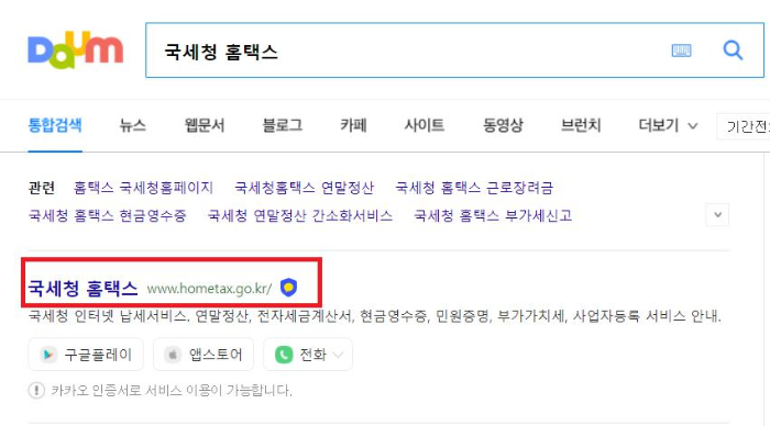 ▷ 포털사이트에 국세청 홈택스를 검색합니다.