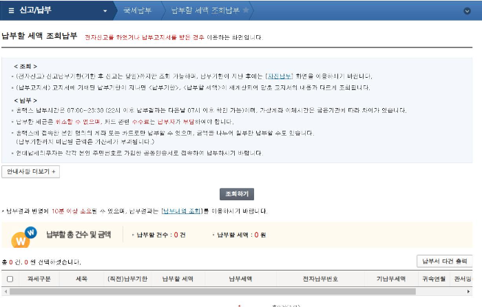 ▷ 납부할 세액 조회 납부 클릭 및 조회
