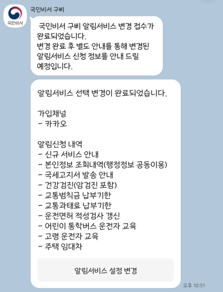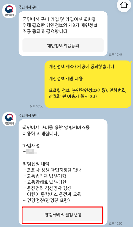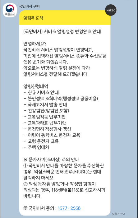 구삐 서비스를 통해 여러 가지 알림을 받아 볼 수 있어 편할 것 같습니다. 국민 비서라는 이름에 맞게 여러 가지 서비스를 제공해줘서 좋은 것 같습니다. 사진을 보시고 차근차근 따라 하시면 쉽게 신청 가능하니 편하게 알림 받아보셨으면 좋겠습니다.