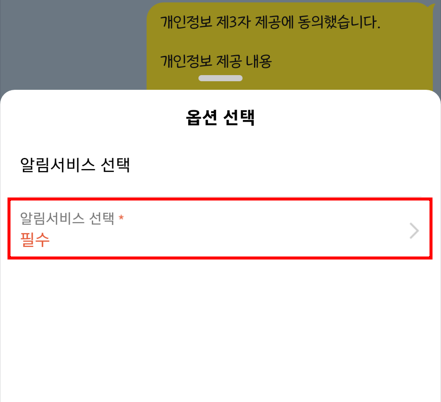 기존에 알림 신청 내역이 있다면 확인 가능합니다. 알림 서비스 설정 변경 버튼을 클릭한 후 알림 서비스 선택을 누릅니다.
