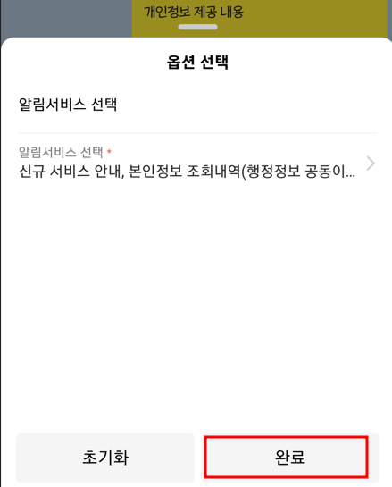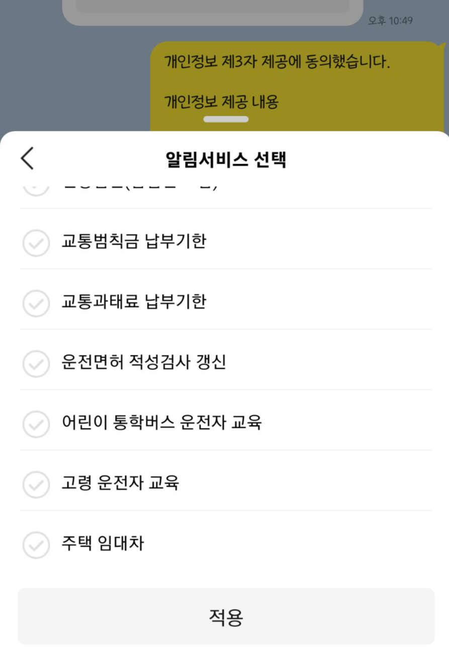 저는 모든 알림서비스를 선택했습니다. 적용을 누른 후 완료를 누르시면 저장이 됩니다.