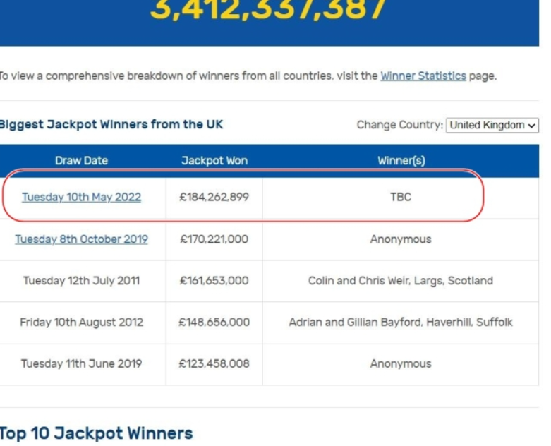 당첨금은 영국 평균 급여 (4918만 원)의 약 5900년 치에 해당합니다. 현지 언론들은 이번 당첨금이 영국에서 역대 최대 금액이라 전했습니다. 당첨자는 유명한 영국 가수인 아델보다 자산이 많아지게 되었습니다. 기존 최대 당첨금은 2019년 1억 7천만 파운드인데 당시 당첨자들은 신원을 공개하지 않았습니다.
